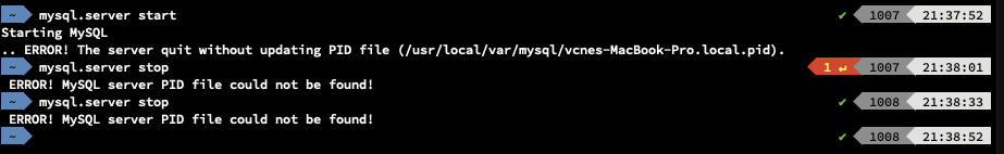 I installed MySQL using brew. Suddenly, after running mysql.start I get the following error: